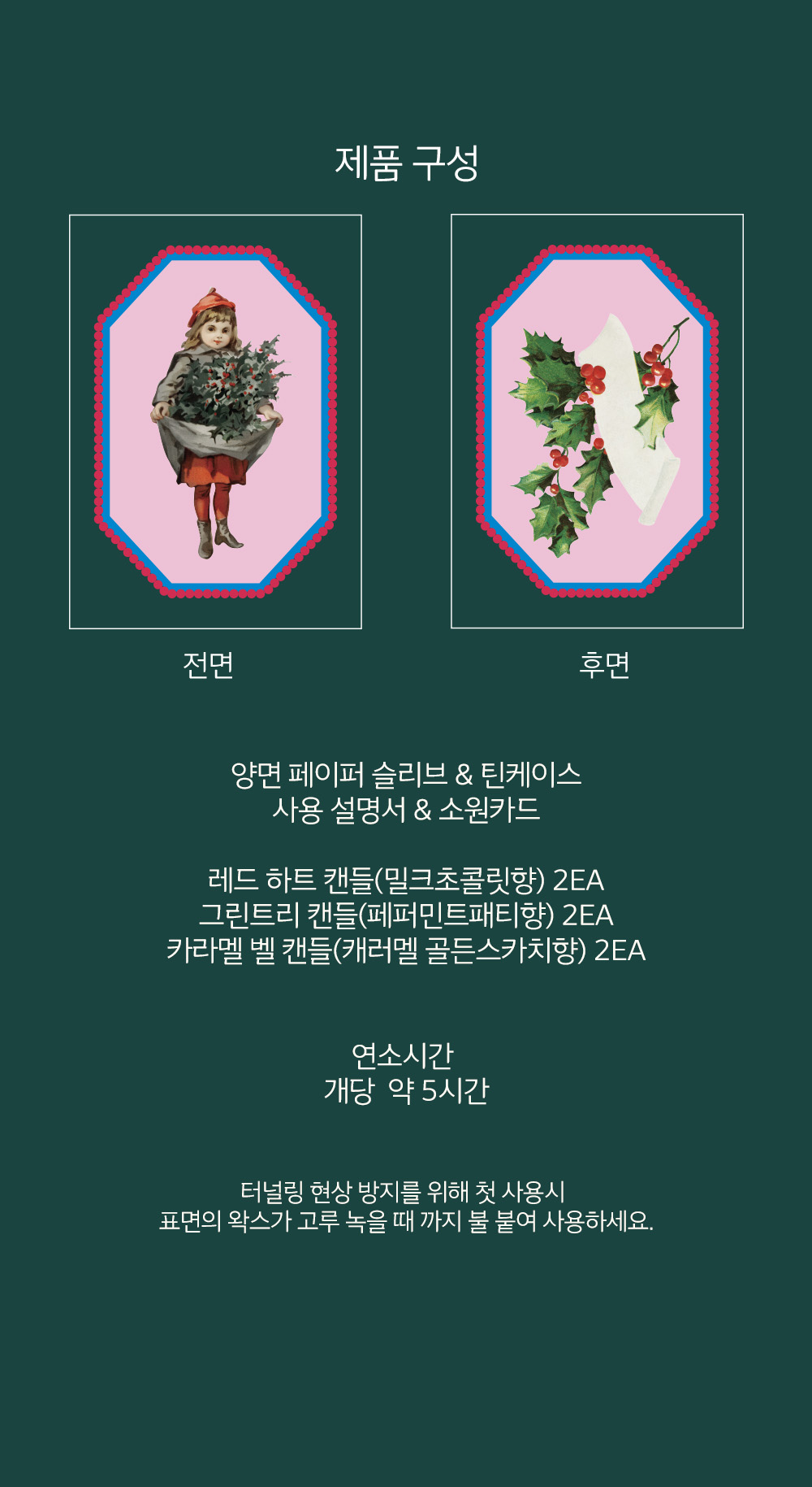 -불을 붙여 사용시 주변에 연소되는 성분의 물질이 없도록 유의하세요.